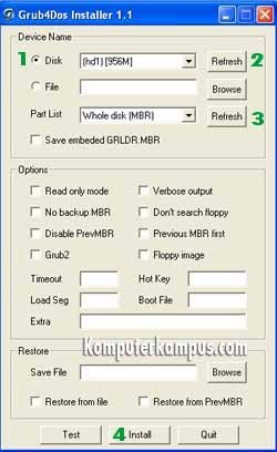 Selanjutnya jalankan lagi Tool Grubinst_gui.exe pada Grub4Dos yang telah di download juga, kemudian akan tampil seperti gambar berikut :