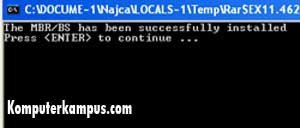 Pilih "Disk" kemudian klik "Refresh" dan pilih USB Flashdisk yang akan di install Grubnya. kemudian klik "Refresh" lagi pada bagian ketiga. dan setelah itu pilih "Whole Disk (MBR)" pada option ketiga. terakhir klik "Install" maka akan tampil pesan dos dengan hasil sebagai berikut :