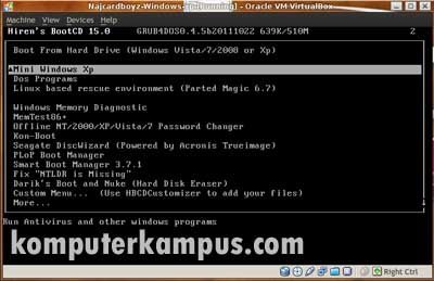 Kali ini saya akan posting satu artikel lagi, artikel mengenai tool rahasia para teknisi komputer yang sangat berguna untuk keperluan backup data, check bad sector harddisk, crack password account user Windows, fix NTLDR, recovery data, partisi harddisk, test harddisk, antivirus scan, dan lain-lain hanya dalam satu tool yaitu Hiren Boot CD (HBCD), sesuai judul di atas, kita akan belajar install/membuat Hiren Boot CD kedalam flashdisk, dengan menggunakan operating system windows, baik windows xp, vista maupun 7. dalam uji coba kita kali ini saya menggunakan Hiren Boot CD 15.0, walaupun versi terbaru Hiren Boot CD saat ini adalah HBCD 15.1 (soalnya belum di download). untuk liat-liat aplikasi yang tersedia di Hiren dan lain sebagainya anda bisa buka postingan sebelumnya disini. baik, kita langsung ke tahap installasinya.